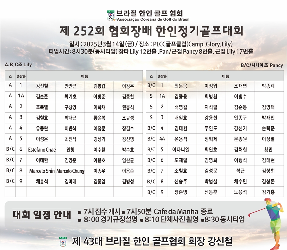 한편, 브라질 한인 골프협회는 올해 하반기에 정기대회를 한 차례 더 개최할 예정이며, 6월 11일부터 13일까지 PLGC골프클럽에서 범미주한인골프대회를 진행할 계획이다.