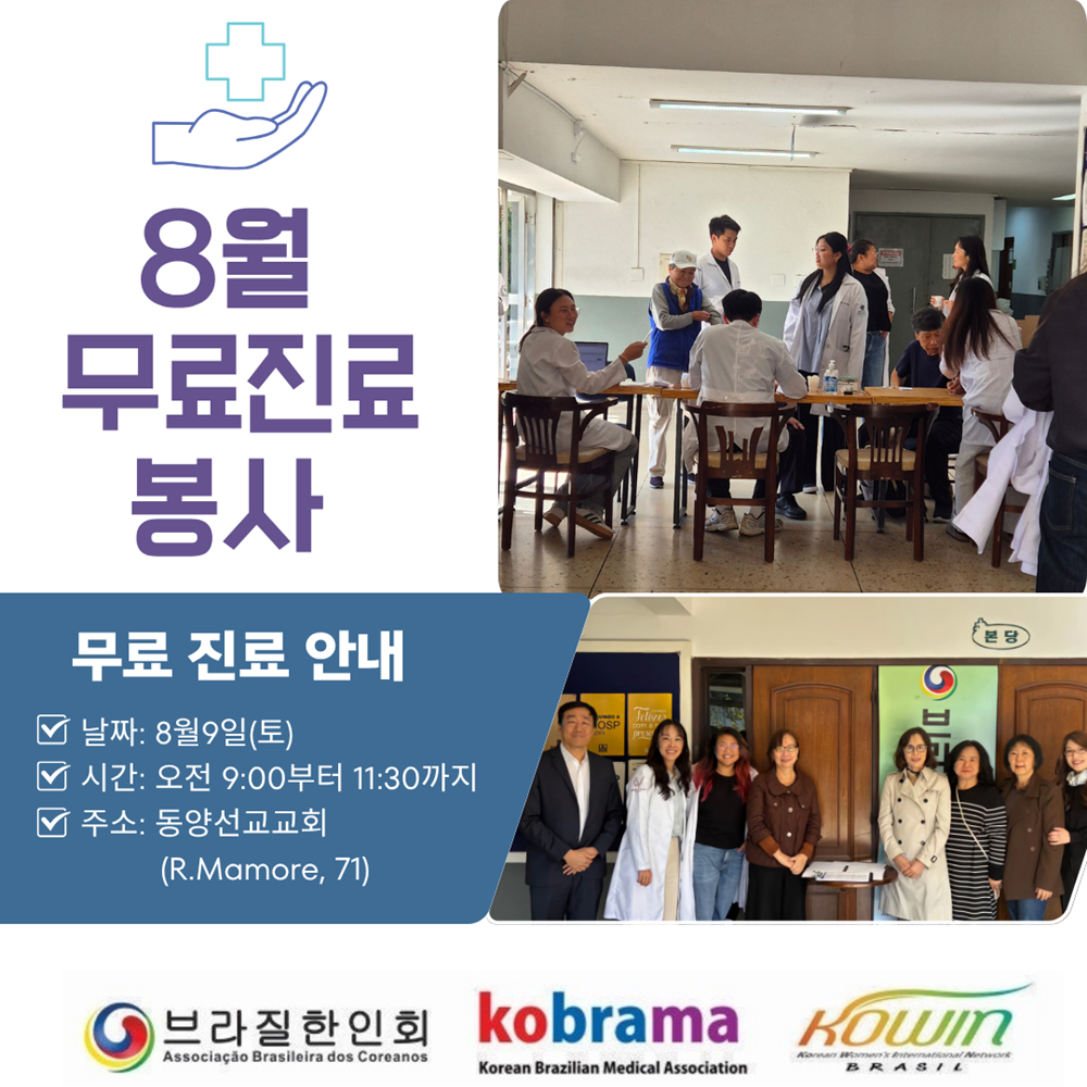브라질 한인회, 의료 소외 동포 위해 8월 정기 무료 진료 개최