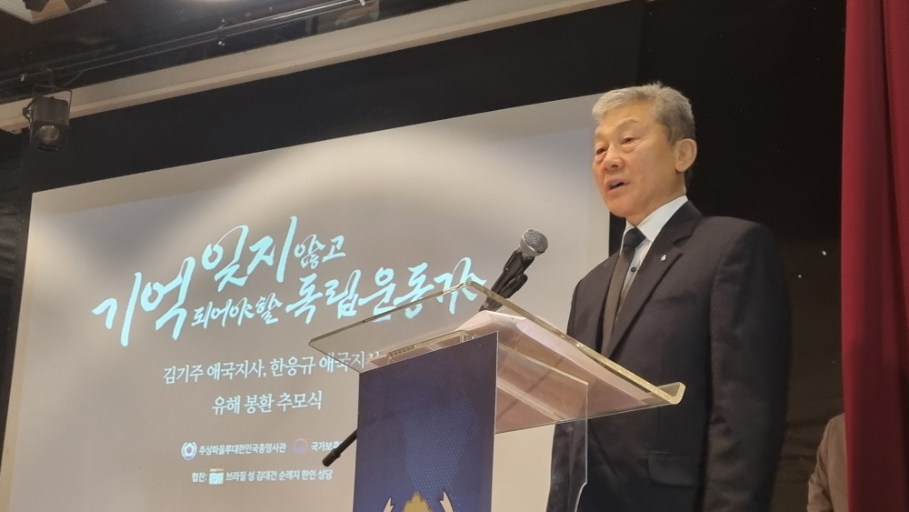 유족 대표로 나선 김기주 지사의 아들 김호영 씨는 “생전 조국에 묻히기를 간절히 원하셨던 아버지의 마지막 소망을 이뤄드리게 되어 감사한 마음뿐”이라며 “저희의 힘만으로는 어려웠을 모든 과정을 국가보훈부에서 세심히 보살펴 주셨다”고 감사를 표했다.