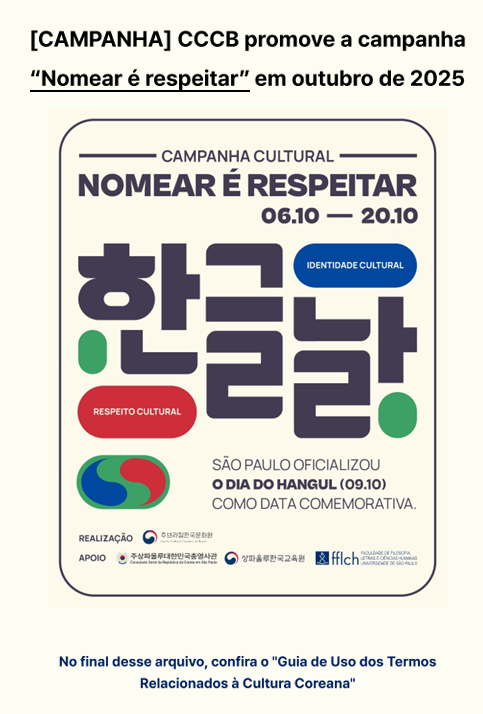 CNN 브라질은 6일 주브라질한국문화원이 ‘이름을 올바르게 부르는 것이 곧 존중입니다(Nomear é respeitar)’ 라는 캠페인을 시작했다고 보도했다.