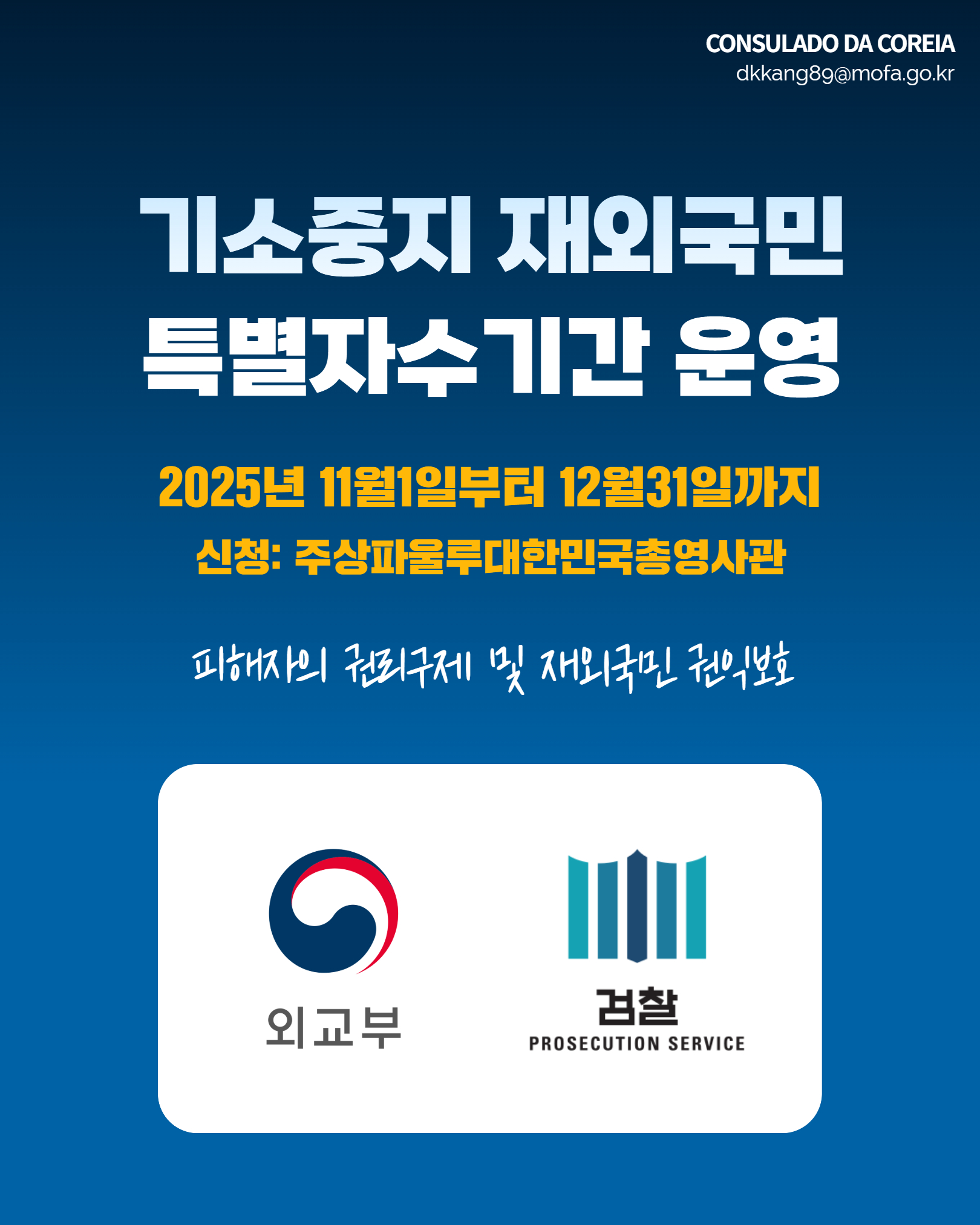 사건 관련 문의는 총영사관 김인호 영사(+55-11-97188-5194) 또는 대검찰청 형사1과 정혜림 수사관(chocoluv2@spo.go.kr)에게 하면 된다.