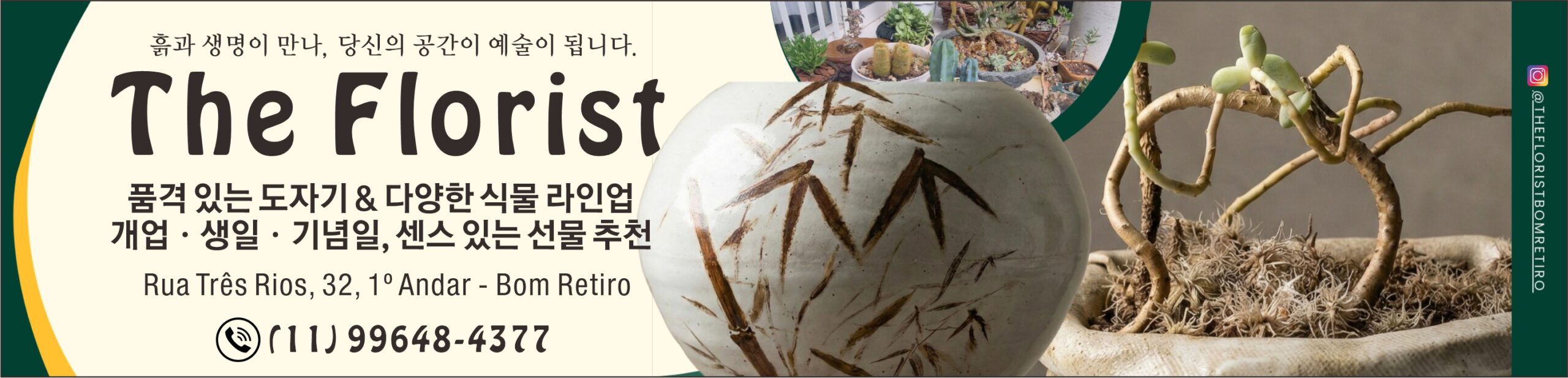 더 플로리스트의 제품 정보와 스타일링 예시는 공식 인스타그램(@thefloristbomretiro)에서 확인할 수 있다. 매장은 한인타운 봉헤찌로 소재 뜨레스 히우스(Três Rios) 거리 32번지 1층에 위치해 있으며, 제품 및 방문 문의는 전화((11) 99648-4377)로 가능하다.
