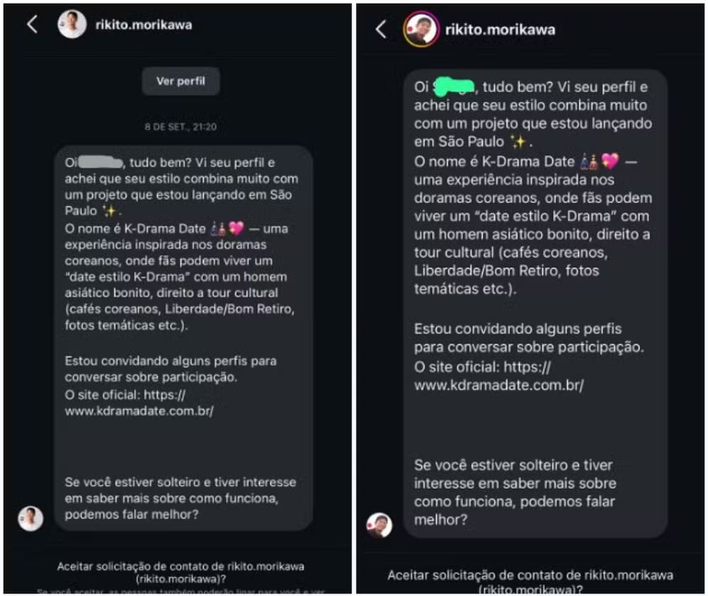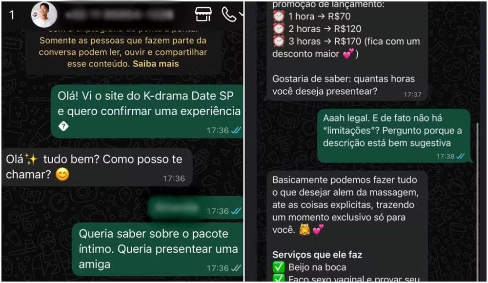 이들은 “오빠와 함께 K-드라마의 마법을 느껴보라”며 드라마 속 상징적인 장소 산책과 스냅 사진 촬영, 명대사 재현 등을 내세웠다. 결제는 픽스(PIX)나 카드로 가능하다고 명시했으나, 구체적인 가격은 공개하지 않았다.