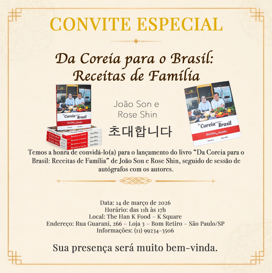 출판 기념 사인회는 오는 14일(토) 오전 11시부터 오후 5시까지 상파울루 한인타운 봉헤찌로에 위치한 K스퀘어 쇼핑 내 ‘더 한 K 푸드(The Han K Food)'(Rua guarani 266 loja 3)에서 개최된다.
