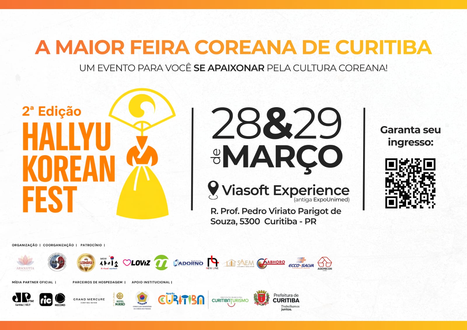 파라나 한인회(회장 정석)는 오는 28일부터 29일까지 이틀간 꾸리찌바 소재 비아소프트 익스피리언스(Viasoft Experience)에서 ‘제2회 한류 코리안 페스티벌 2026(Hallyu Korean Fest 2026)’을 개최한다고 밝혔다.