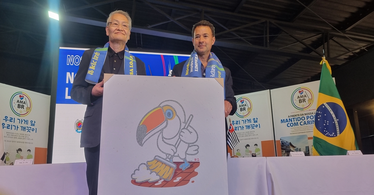 변화는 멈추지 않았다. 지난해 8월, 총영사관(채진원 총영사) 및 노인회와 함께 시작한 “우리 가게 앞은 우리가 깨끗이” 캠페인은 단순한 환경 미화를 넘어선 공동체 의식의 발현이었다. “이 거리는 우리의 책임”이라는 공감대를 이웃들에게 확산시키기 위해 김인호 경찰영사의 협력으로 탄생한 캐릭터는 이 캠페인의 ‘얼굴’이 됐다. 브라질을 상징하는 새 ‘투카노’를 모티브로 한 이 캐릭터는 딱딱한 구호 대신 친근한 미소로 현지인들의 마음을 두드리고 있다.